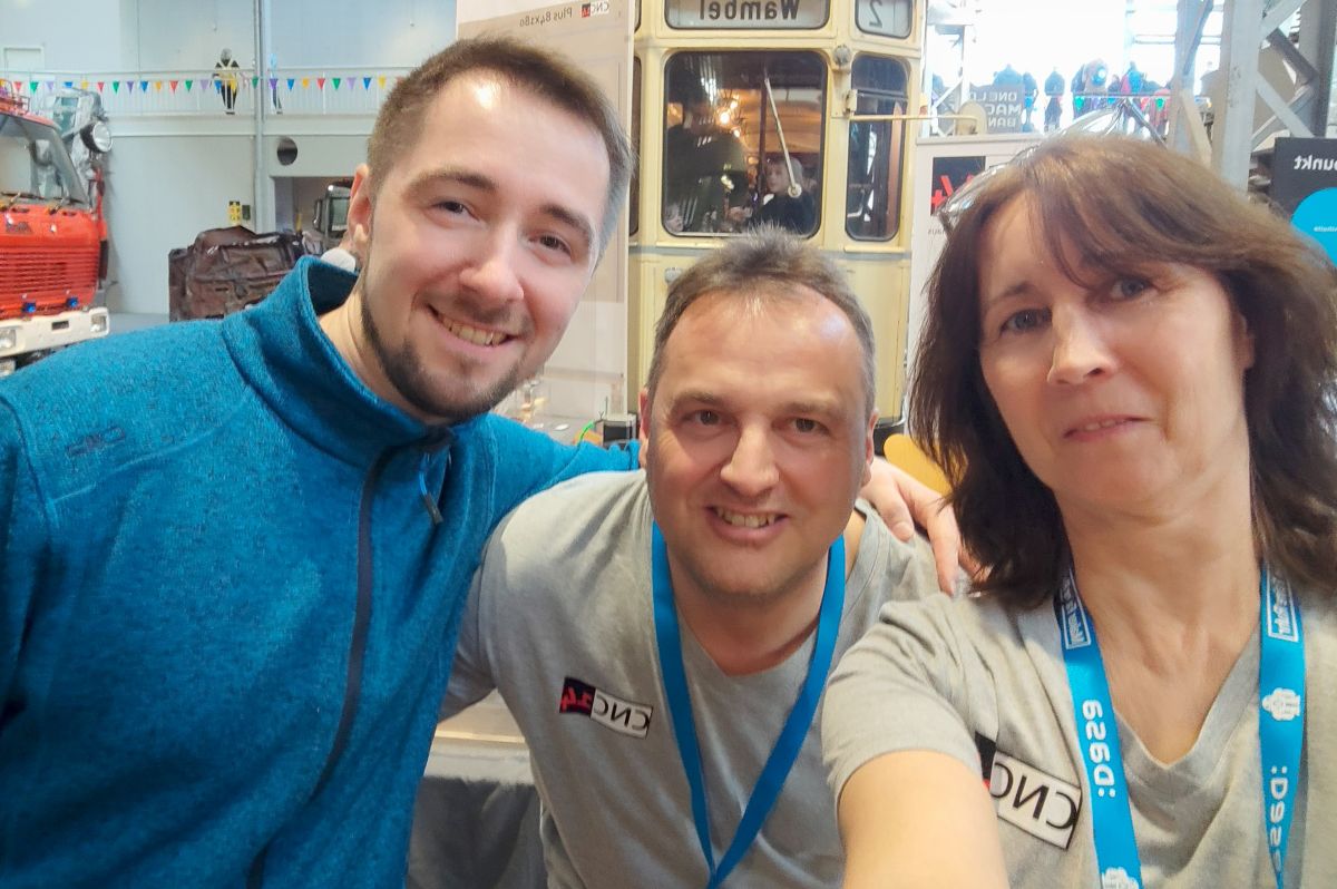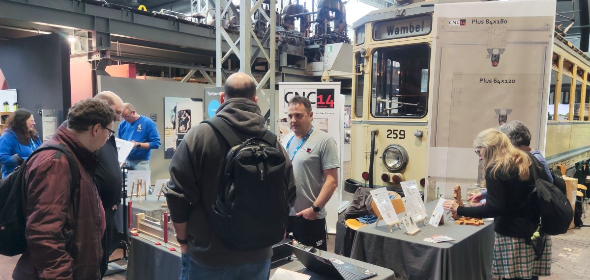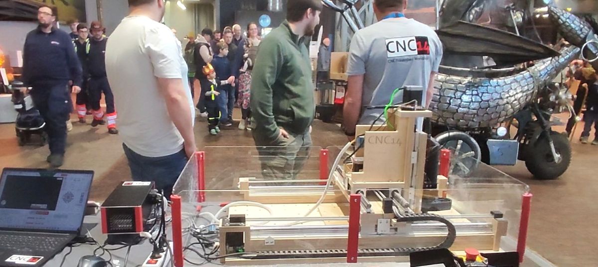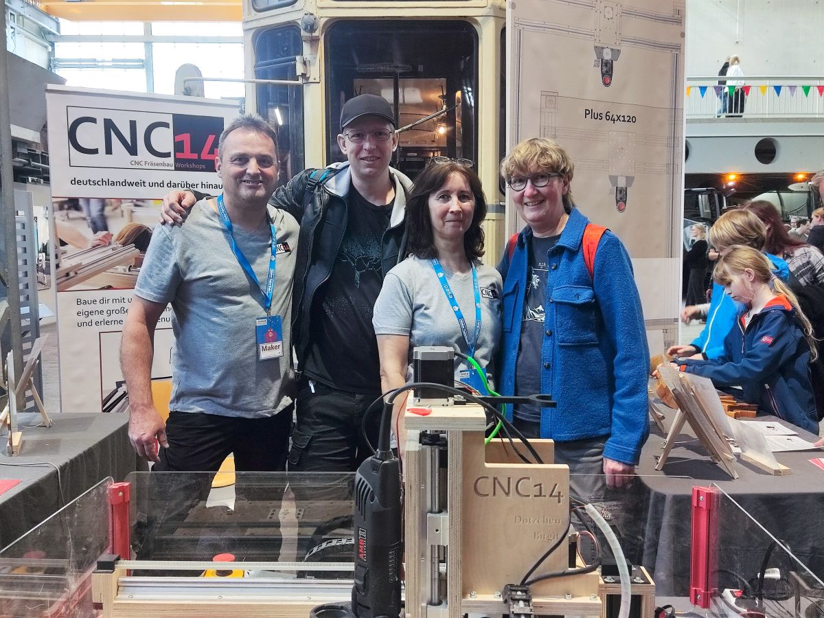 Mit unserem Dötzchen haben wir kleine Osterhasen und Zahnräder gefräst, die viele Besucher als Andenken mitnehmen konnten. Auch hatte Dötzchen erstmals unsere Vise angebaut, die Spannmöglichkeit vor der Fräse, um stirnseitig bearbeiten zu können.