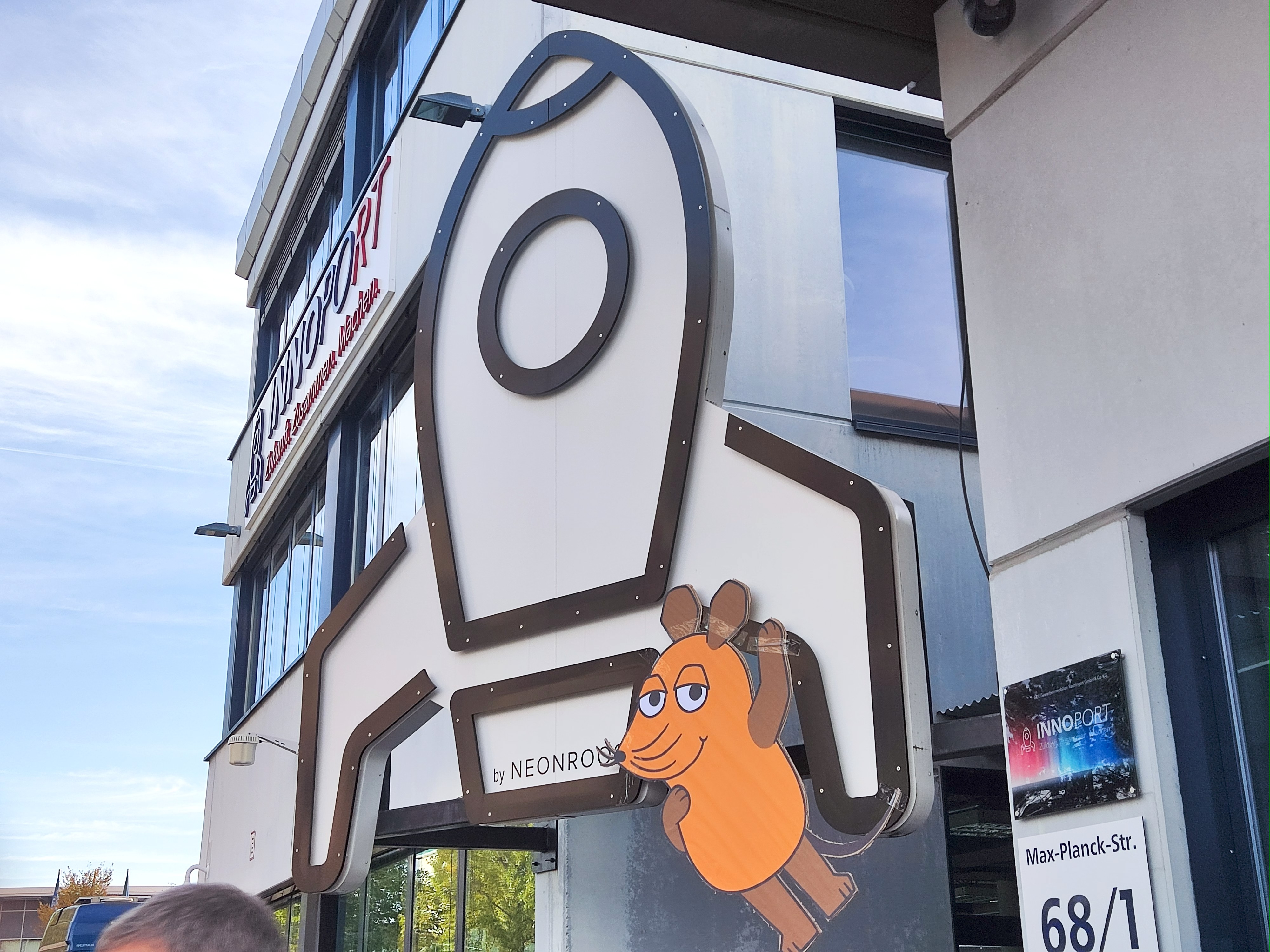 Passend zum Innoport-Logo blickte dabei die bekannte Maus aus dem Raketenfenster.