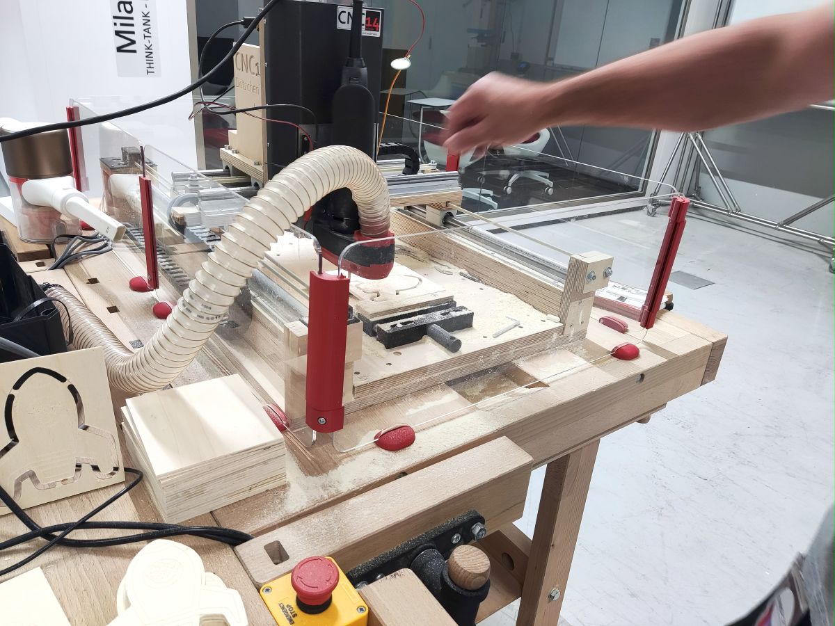 Den Tag über verteilt kamen die Kinder zu unserer Station um live mitzuerleben, wie aus Holzplättchen kleine Mausraketen gefräst wurden.