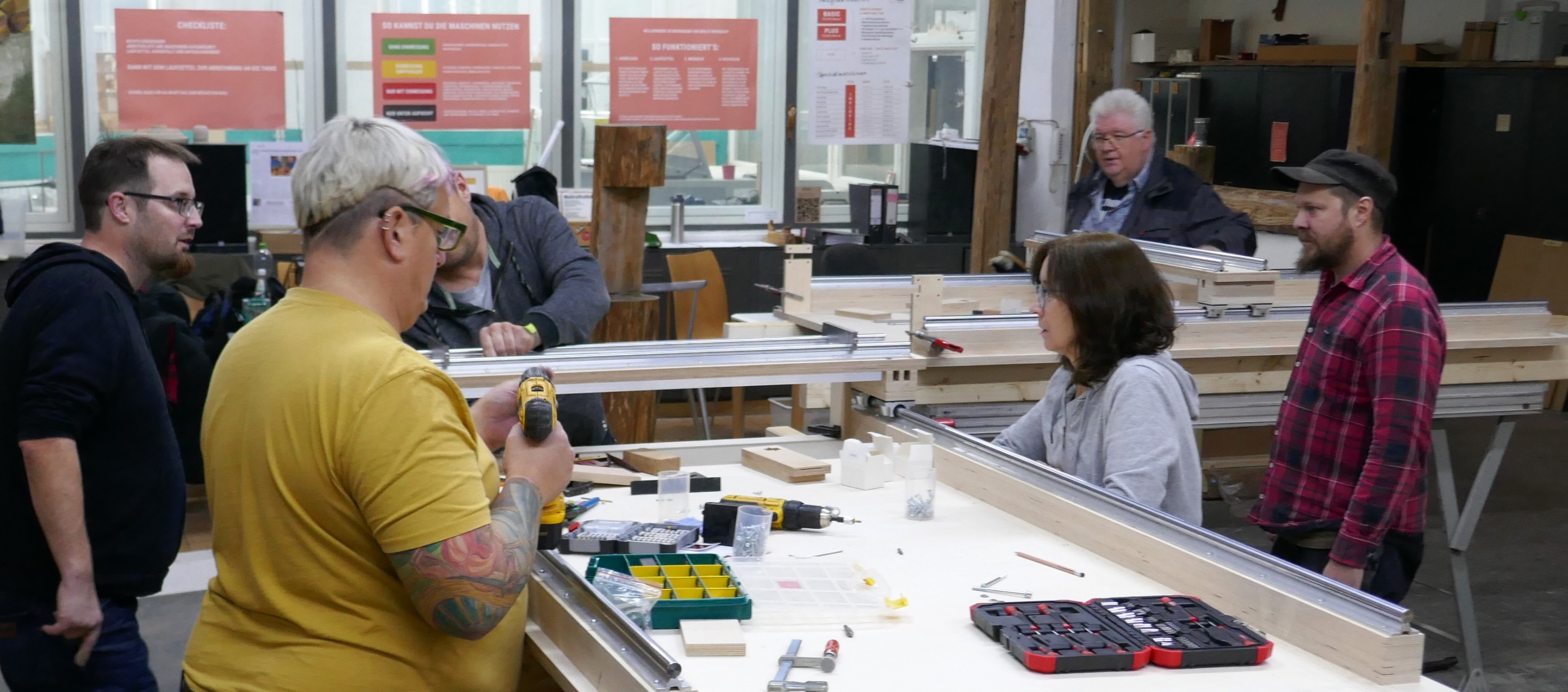 Zuerst standen die Z-Achsen auf dem Plan. Dieses Mal hatten wir beide Versionen dabei: eine Standard-Achse und die Premium-Variante. Schnell merkten wir, dass die Teilnehmer mit viel Begeisterung an die Sache gingen und die ersten Schritte ruckzuck erledigt waren.