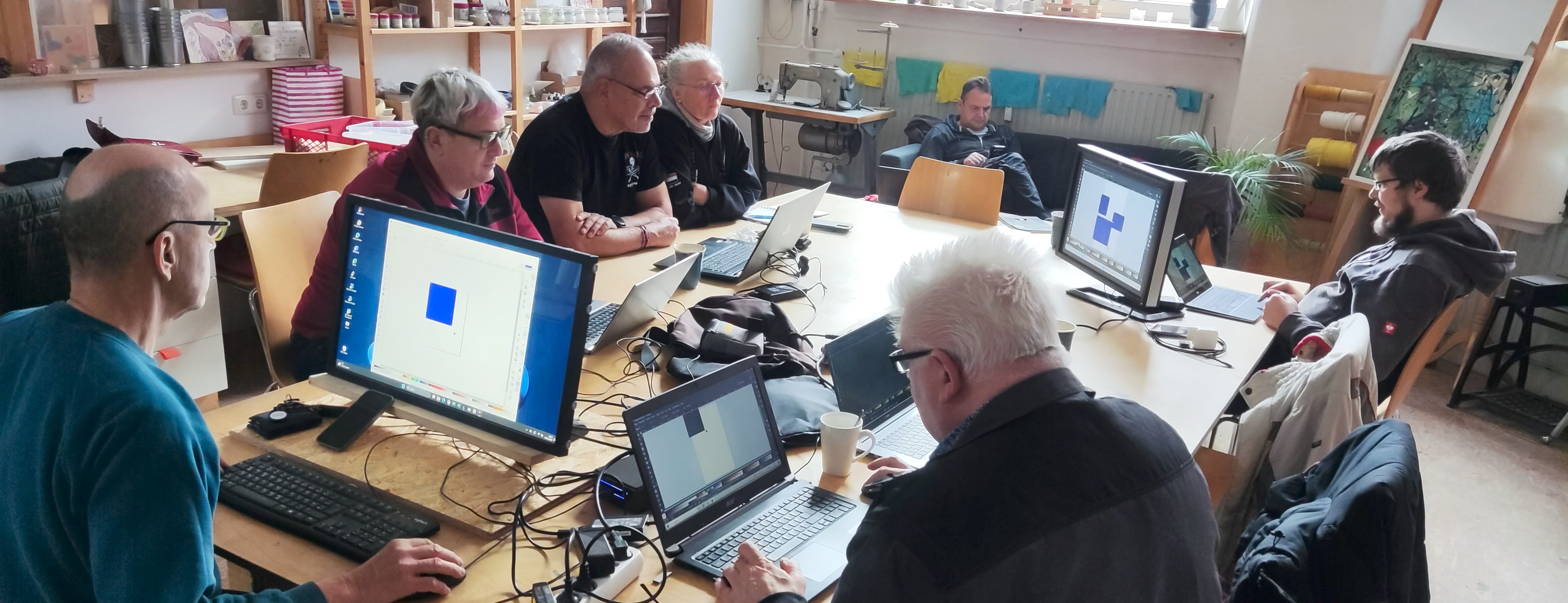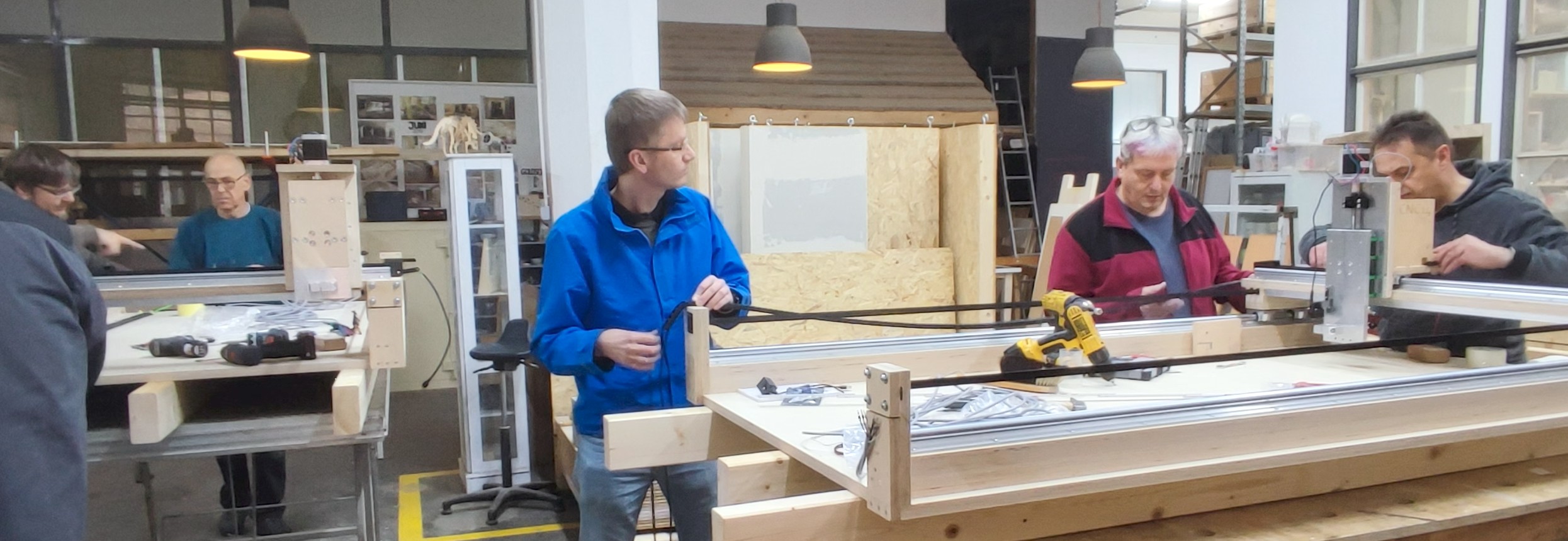 Ende November war es endlich soweit – wir waren eingeladen, einen Workshop im Werkraum Augsburg zu geben. Am Freitagmorgen trafen wir uns voller Vorfreude mit vier motivierten Teilnehmern, um die Reise zu beginnen. Nach einer kurzen Begrüßungsrunde ging es auch schon los!